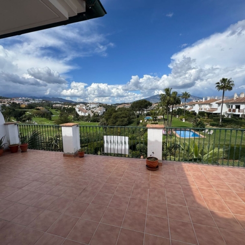 We present this townhouse located in the prestigious gated community Estrellas del Golf, surrounded by golf courses. The complex features a private pool, tennis court, and beautifully maintained gardens.