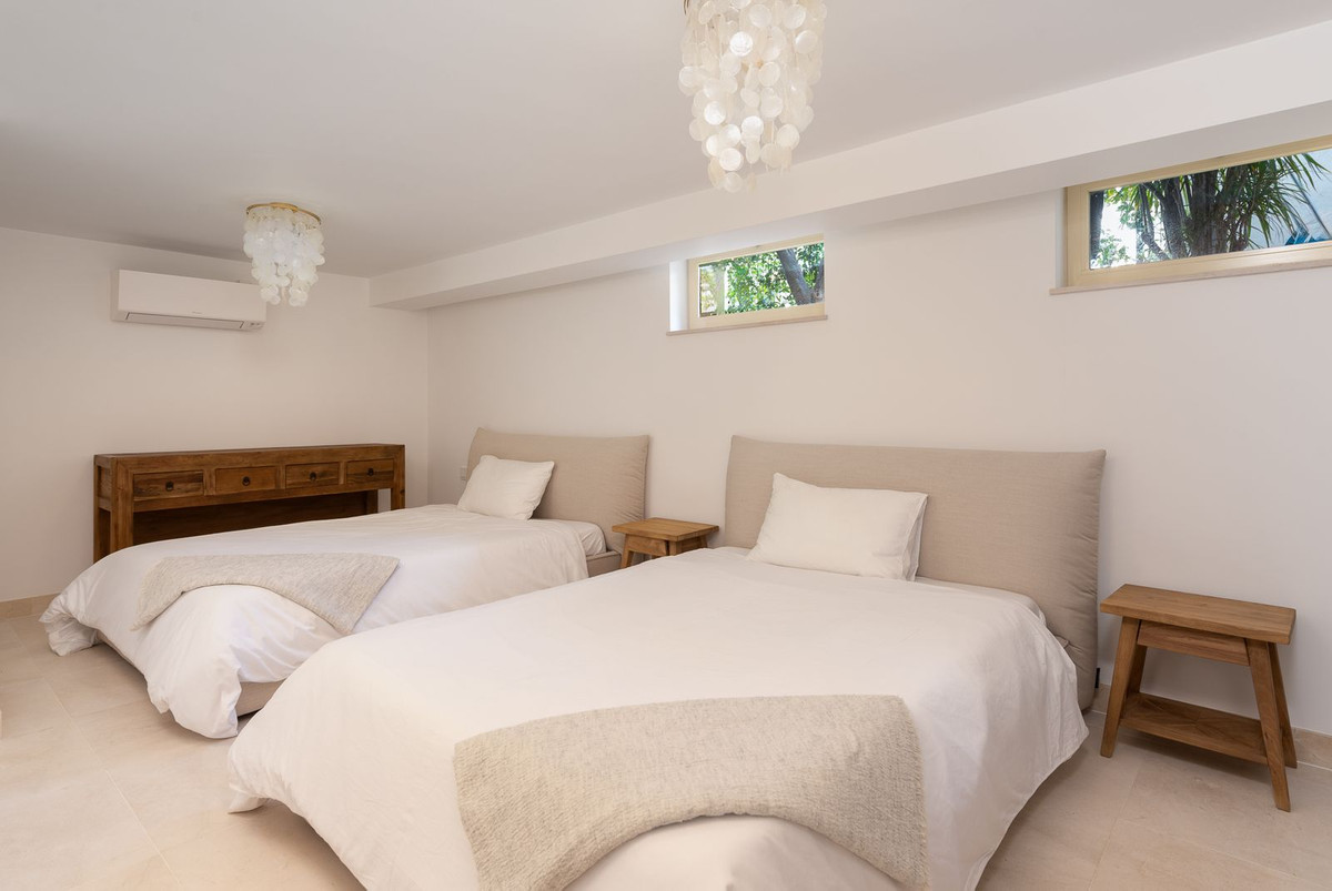 Beautifully finished House step to the Sandy Beach of Marbella, Finished with the highest quality building materials located 50 meters from the beach, walking to Puerto Banús and San Pedro / Guadalmina Baja and very close to several top Golf Courses of Marbella and in a very private and Quiet Urbanization.