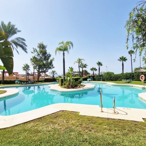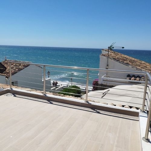 It is a corner unit with only one direct neighbor, which offers greater privacy. The location is unbeatable, the whole center of Estepona is within walking distance, and the property is not subject to expensive community fees.