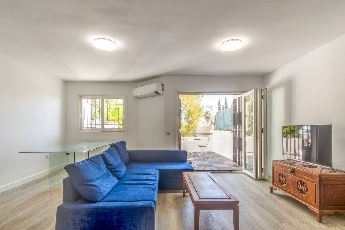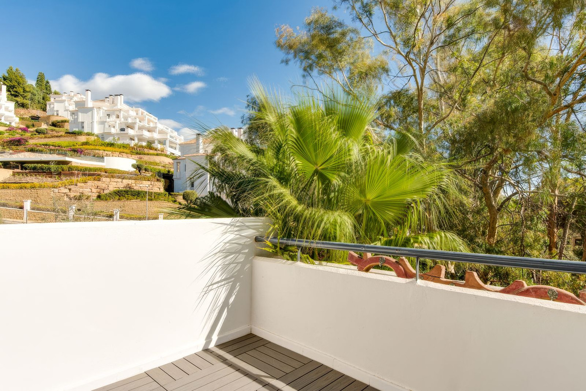 Fabulous townhouse/duplex apartment located within a private community in the centre of Nueva Andalucia, Marbella. This spacious home is accessed via an extremely large community terrace area, which is only used by the owner of this property, which leads to the entrance hallway of the property. Inside, you find a modern design kitchen, dining and living area, along with a guest toilet. The lounge flows directly onto a very private terraced area, large enough to entertain and include several sun loungers, with views to the surrounding green areas. Upstairs, you find three spacious bedrooms, with the master enjoying en-suite facilities, a separate family bathroom and a further extremely spacious and very private terrace with partial sea views. The property also offers two underground private car parking spaces, making this an ideal home or rental investment, where short term rentals are currently permitted by the community. The property was completely refurbished in Q4 2023, including a new kitchen, bathrooms, new windows, new air-conditioning, new terraces and upgraded electrics, plus the current owner has paid towards a community fund which is due to start repainting the entire community in the coming weeks. Contact us now!