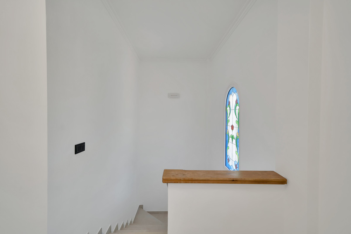 Upstairs, the private quarters offer access to two panoramic terraces overlooking the pool, garden, and coastline. The master suite and another bedroom include en-suite bathrooms, while a third bright bedroom and another full bathroom complete the level—perfect for families and guests seeking space and privacy.