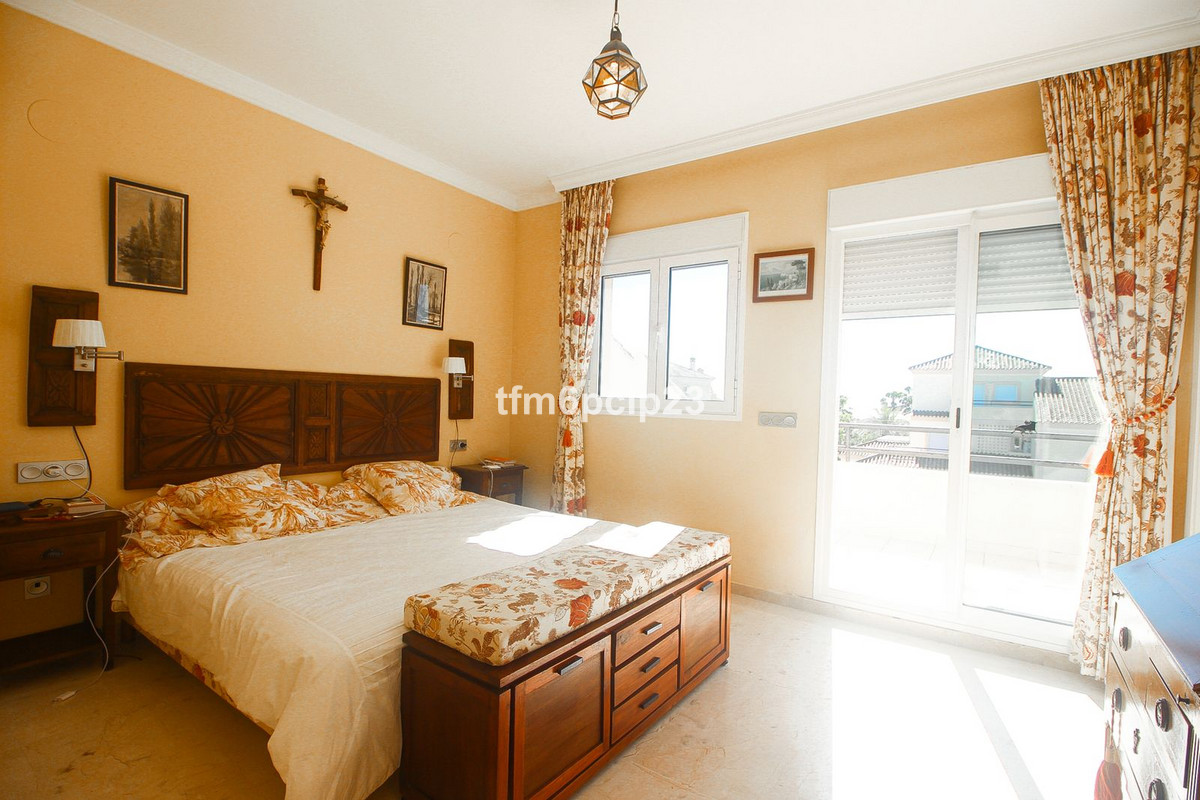 Discover this exquisite frontline golf penthouse at San Roque Club, a premier Costa del Sol destination. This two-story gem offers four spacious bedrooms, three with terraces overlooking the 13th hole. The master suite includes a large walk-in closet. Enjoy a modern kitchen with terrace access, perfect for outdoor dining with stunning golf course views.