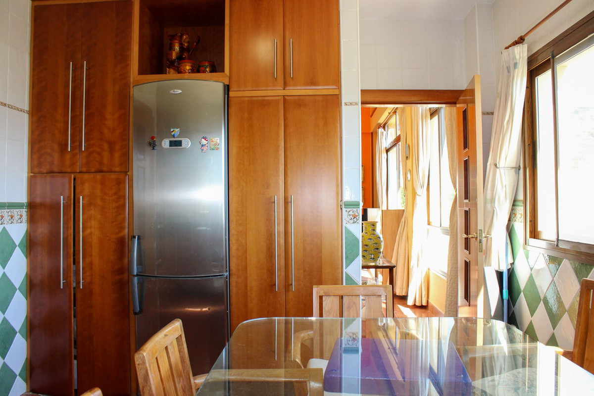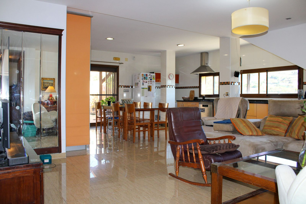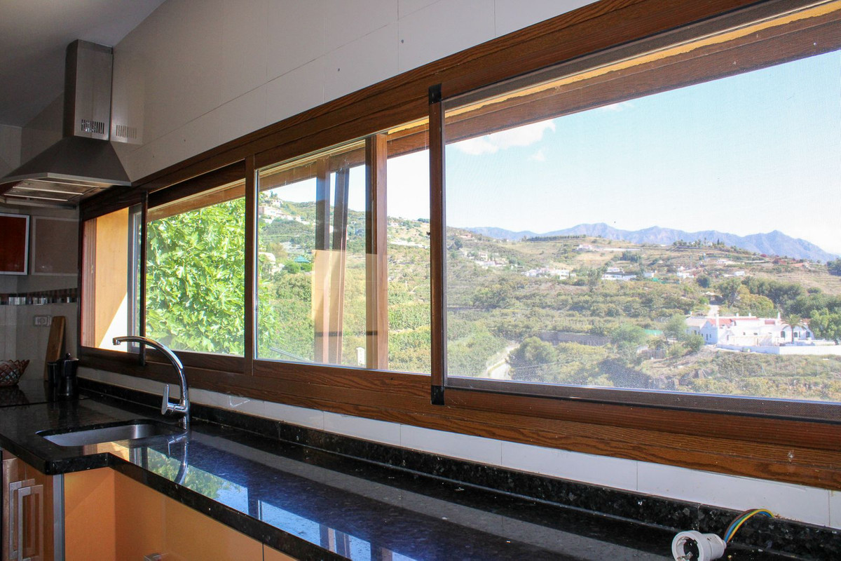 Därefter följer ytterligare två sovrum och i anslutning till dem, ett stort fullt utrustat kök med öppen planlösning till vardagsrummet med ytterligare en braskamin. Köket och vardagsrummet har många fönster för mycket ljus och från köket, har du även fantastisk utsikt över bergen. Härifrån når du ytterligare en terrass, där det även finns ett utomhuskök.