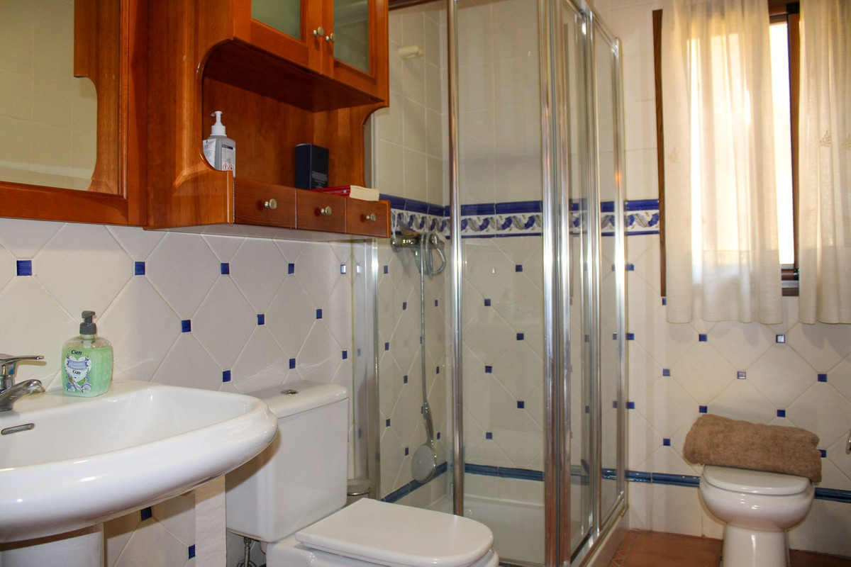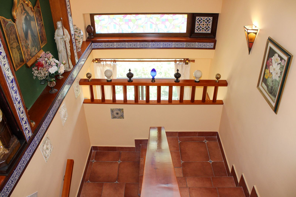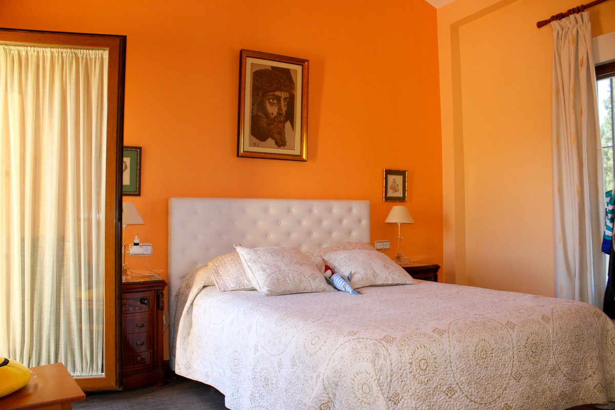 Tillbaka till hallen och vi går upp på övre våningen, där vi direkt till vänster har en utgång till ytterligare en stor terrass. Den terrassen når du även från sovrummet, som ligger bredvid. Härnäst har vi ett badrum och ytterligare två sovrum, det senare sovrummet har utgång till ytterligare en terrass. Härifrån kan du se en liten glimt av havet.