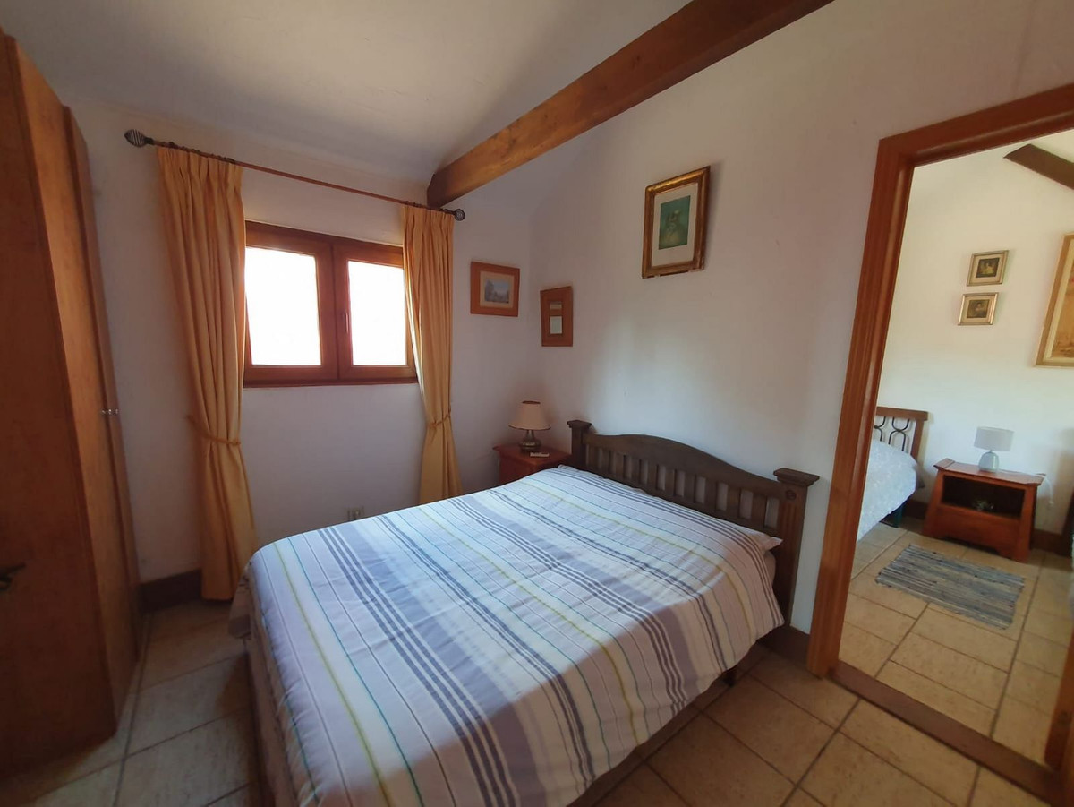 The house features three well-proportioned bedrooms and a stylish shower room. The spacious lounge boasts high ceilings and a cosy wood burner, creating a warm and inviting atmosphere. Air conditioning and double glazing throughout ensure comfort all year round.