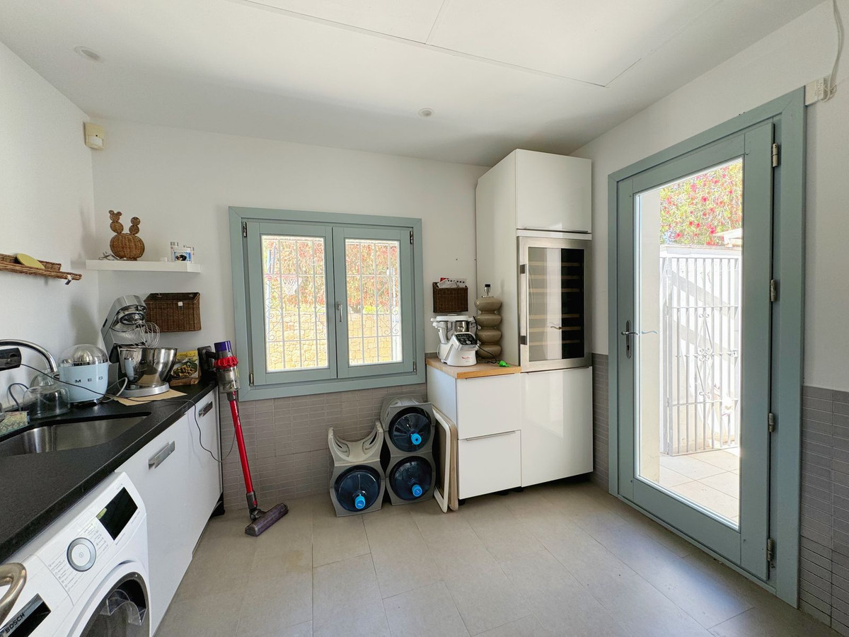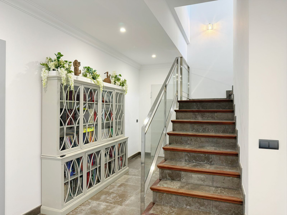 Outside, enjoy a private pool surrounded by landscaped gardens, a chill-out zone with gas fireplace, barbecue area, summer dining space, and beach bar—perfect for soaking up the Mediterranean lifestyle.