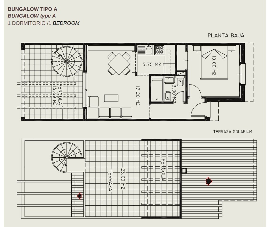A total of 12 bungalows are currently offered for sale all with one bedroom (total living area 55 m² (including terrace or solarium 16 m²)) Prices vary: one-bedroom bungalows cost from €170,000 with parking place included and 2 bedrooms bungalows starting from 200.000€ with garage. All properties have private parking.