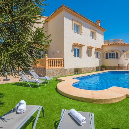 Calpe is a coastal town of around 25,000 inhabitants, located between Altea (10 km) and Moraira (10 km). It boasts two beautiful sandy beaches: El Arenal-Bol and La Fossa, separated by the imposing Peñon de Ifach rock. Distance to the freeway is approx. 12 km, and Alicante airport is approx. 80 km away.