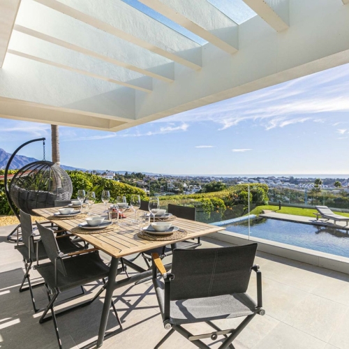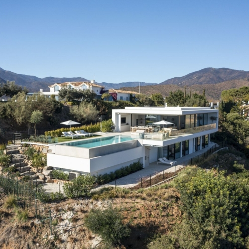 Perched in the peaceful hills of La Quinta, this stylish contemporary villa captures unobstructed views of the Mediterranean Sea and the iconic La Concha mountain. Designed for refined living, the property blends clean architectural lines with tranquil outdoor spaces, offering a private retreat just minutes from the energy of Marbella.