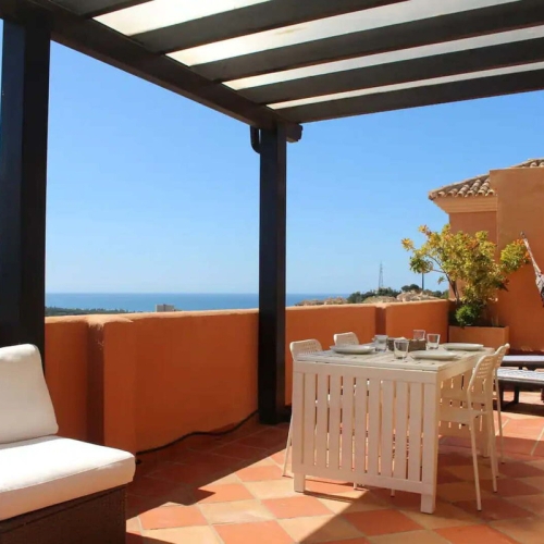 Spectacular beachfront penthouse with panoramic sea views.Two bedrooms, two bathrooms, and a living room, all opening onto a terrace with wonderful, endless sea views. The fully equipped kitchen is integrated into the living room. It has an elevator that takes you directly to the pool and beach access. Recently renovated, it features practical and functional Nordic-style decor, plenty of light, and large windows opening onto a spacious terrace with wonderful views. Independent air conditioning (hot/cold) in all rooms, awnings, electric shutters, etc. Gated parking, private security, and walking distance to shopping centers.