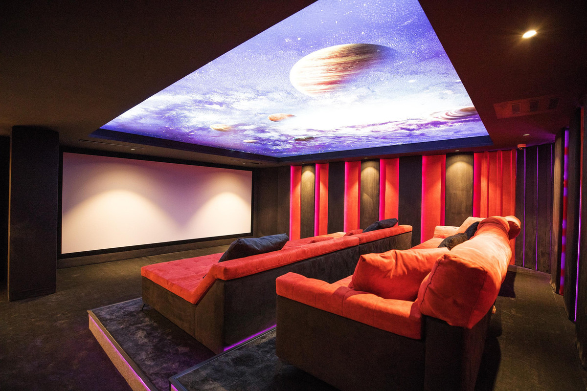 En skulptural trappa leder till övervåningen, där en gästsvit med tillhörande badrum, kontor, klädskåp och tillgång till terrasser väntar, vilket ger en privat reträtt för gäster eller boende som söker en lugn arbetsyta. Källarvåningen är utformad för både funktionalitet och underhållning och erbjuder ett rymligt garage med plats för upp till sex bilar, samt förråd och allmänna utrymmen. Underhållningsrum i källaren ökar valmöjligheterna för fritid, vilket gör den till den perfekta platsen för sammankomster och personligt nöje.
