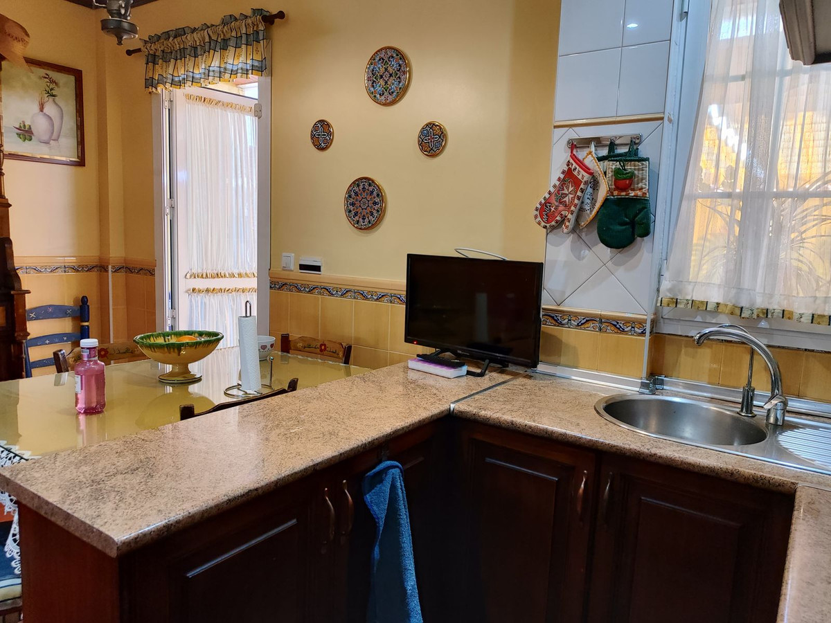 Spacious living-dining room, separate kitchen with pantry, guest toilet, and patio with barbecue and awning.