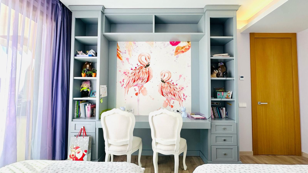 The highlight is the expansive balcony with breathtaking panoramic views of the mountains, golf course, and sea. Designed for outdoor living, it includes a BBQ area, sun loungers for tanning, and space for children to play safely in the open air.