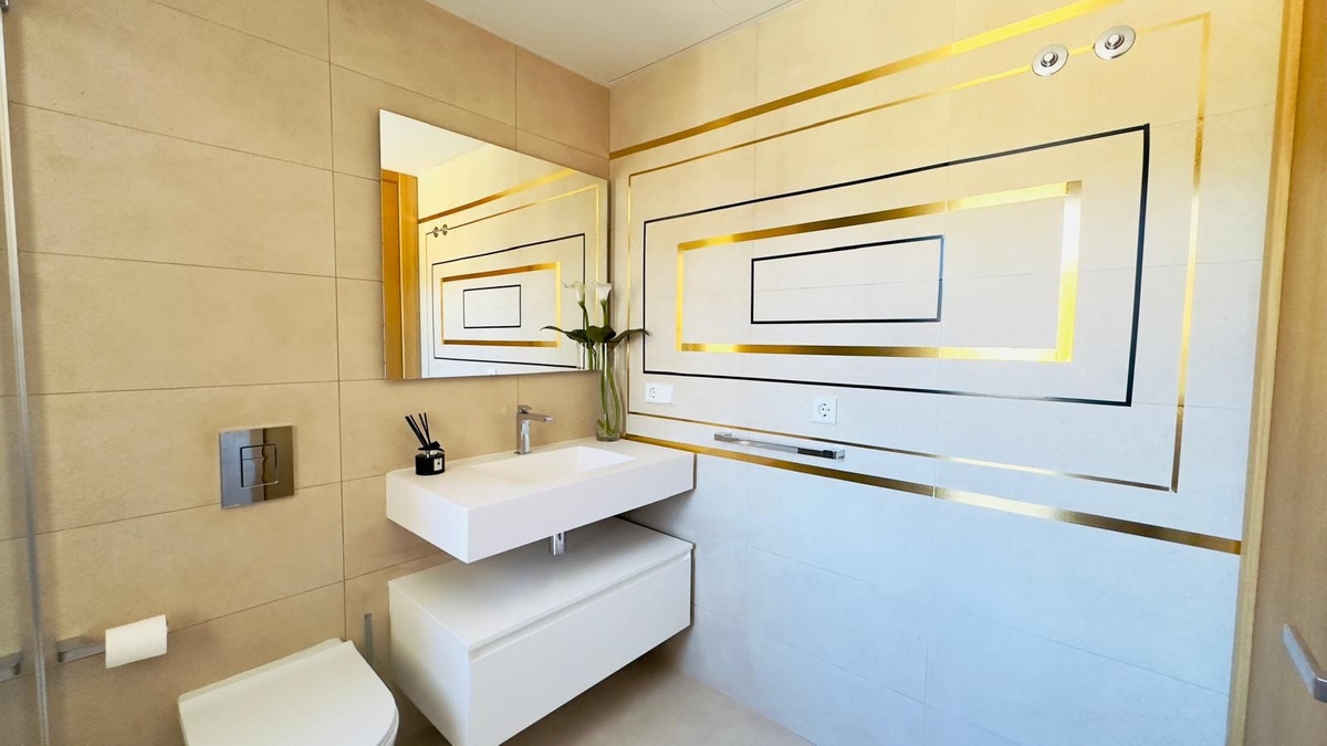 Inside, the apartment features an open-plan layout with a sleek modern kitchen, generous living and dining areas, and four well-appointed bedrooms—each with its own bathroom. Located in a secure, peaceful community, close to golf, nature, and a short drive from Marbella and Puerto Banús.