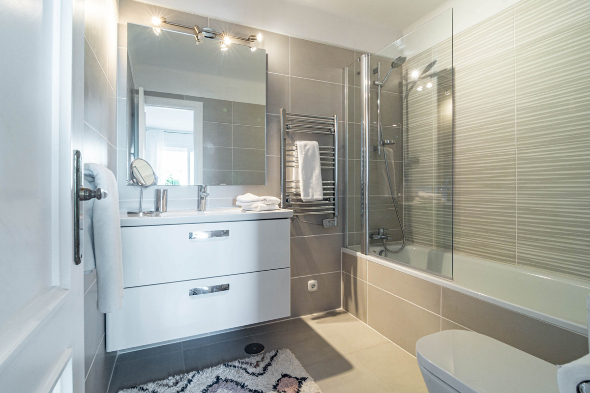 Upstairs, you'll find two well-sized bedrooms, each with their own bathroom, and the second terrace – a private balcony offering panoramic sea views, La Concha mountain views, and a tranquil pool view.
