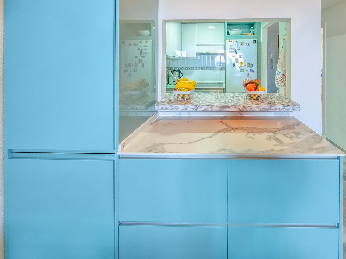 Köket är halvöppet och fullt utrustat med vitvaror.