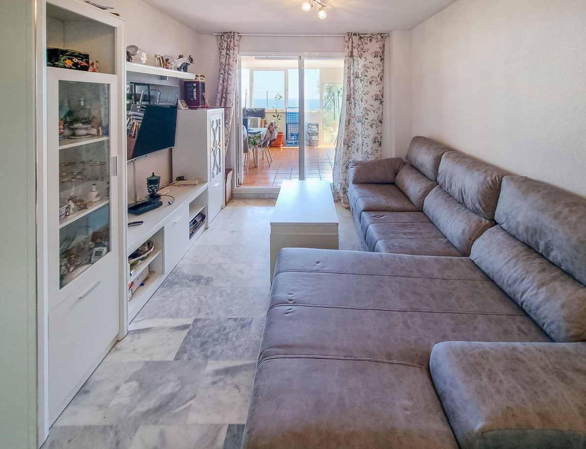Härlig 2-bäddslägenhet med terrass, privat trädgård och utsikt över havet och golfen i Casares Costa.
