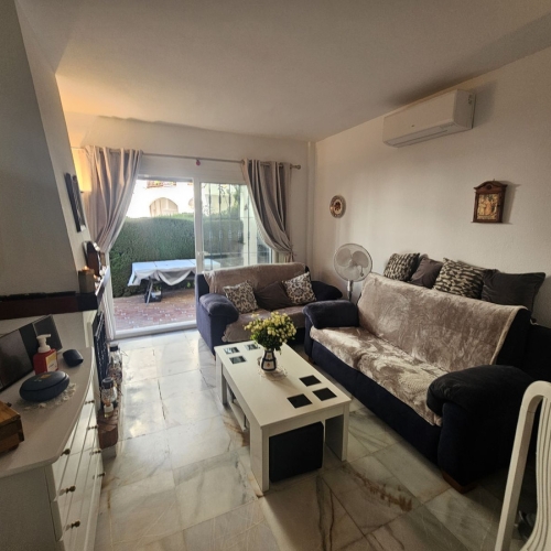 Located in one of Calahonda's most prestigious and tranquil residential complexes, this elegant ground floor apartment offers a unique combination of comfort, privacy, and privileged surroundings, nestled among impeccably maintained tropical gardens.