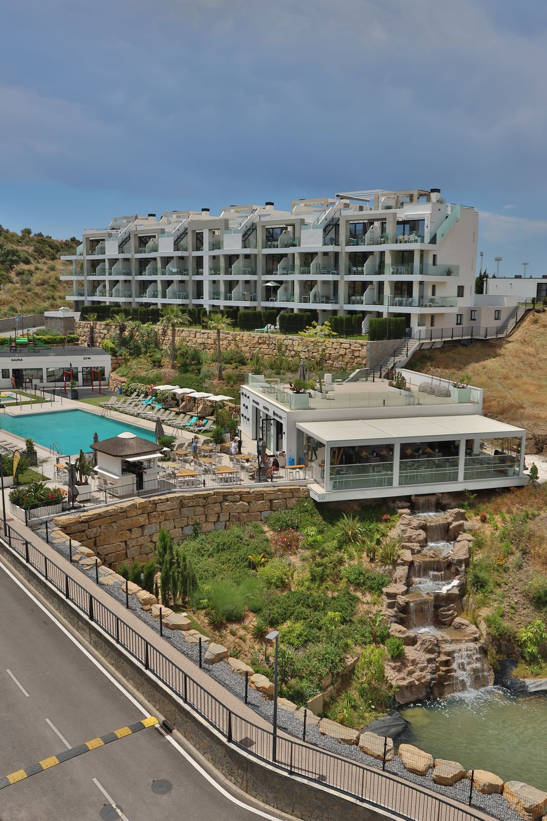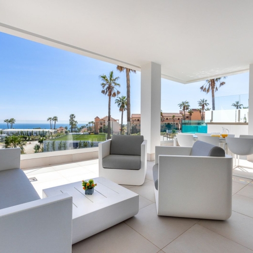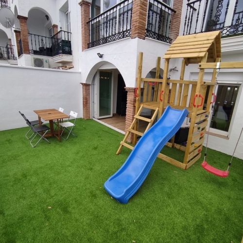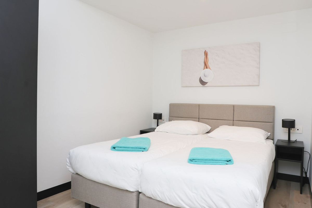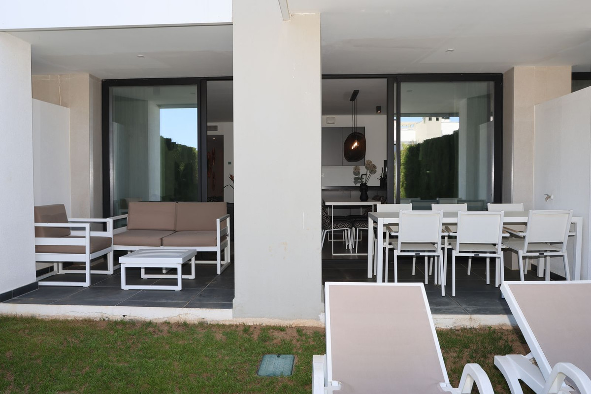 Enjoy your coming holidays in this contemporary ground floor apartment with a large private garden. Entering the apartment you have three bedrooms on the left of the hallway which leads you to the spacious living room with open plan kitchen, all beautifully decorated with furniture from the Netherlands. The wall to floor sliding terrace doors open up to a covered terrace and private garden. Complete with an underground parking spot and a very practical, spacious storage room at the entrance of the apartment. What makes this urbanization special is: heated pool, sauna, gym, laudry area, restaurant open all year, mini supermarket and concierge. Last but not least you can also enjoy the hotel style rental services offered on site.