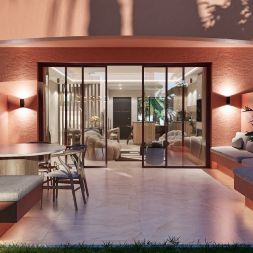 Designed with both comfort and style in mind, the villa features an open-plan living area with a state-of-the-art Miele kitchen, private cinema, gym, sauna, and an outdoor jacuzzi. Two serene primary suites include private terraces, while all bedrooms are generously sized. Bi-folding glass doors throughout create a seamless indoor-outdoor experience, connecting bright interiors with multiple alfresco lounge and dining areas.