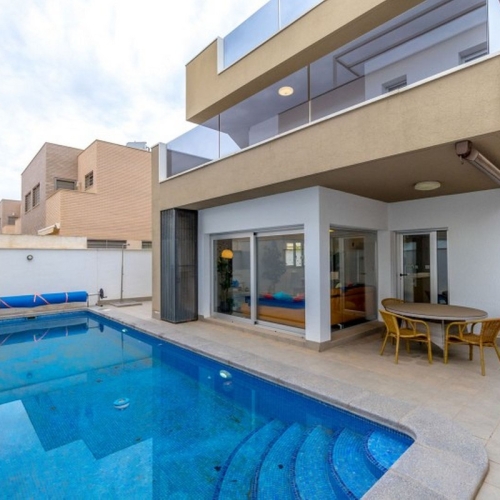 We are excited to introduce this stunning villa in Torre de la Horadada, perfectly situated just a short walk from the beautiful beaches.