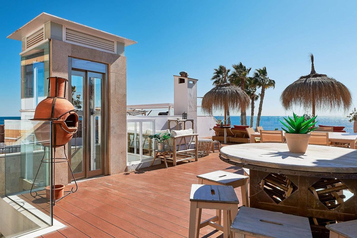 This elegant building houses three high-level tourist apartments, equipped with lift, as well as a sophisticated rooftop bar with sea views.