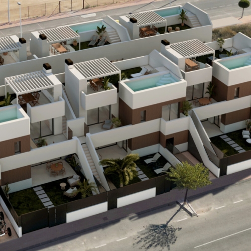 Dessa fastigheter har 2 eller 3 sovrum och 2 kompletta badrum, med parkeringsplats och förråd i ett gemensamt garage samt tillgång till en gemensam pool – erbjuder maximal komfort på en oslagbar plats, idealisk för att njuta av solen, stranden och den medelhavslivsstilen året runt.