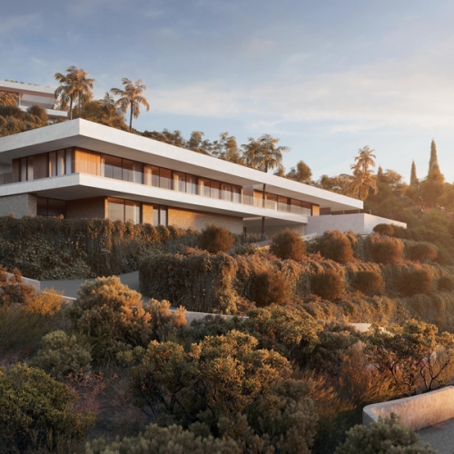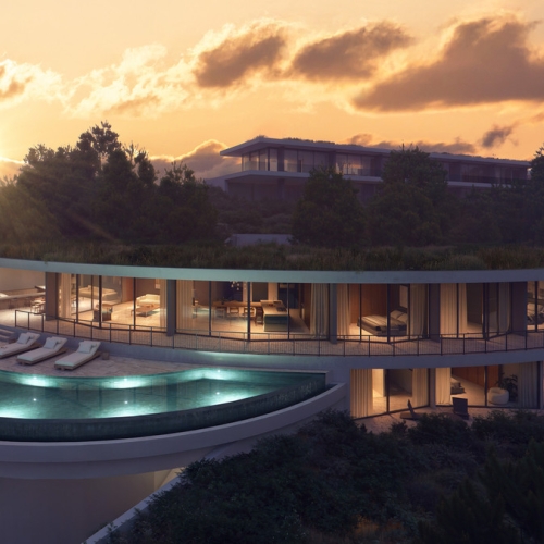 Beläget i det exklusiva området Monte Mayor i Benahavís, Málaga, är denna exceptionella bostad en upphöjd tillflyktsort där arkitektur och landskap smälter samman på ett naturligt sätt. Den ikoniska bumerangformade designen anpassar sig smidigt till bergsterrängen och omfamnar naturens konturer samtidigt som den fångar de mest hisnande panoramavyerna.