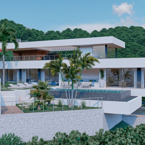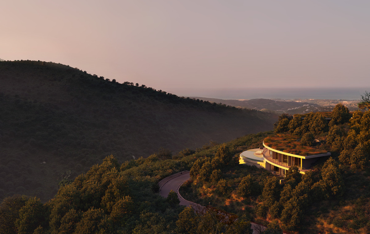 Belägen på en upphöjd plats på prestigefyllda Monte Mayor i Benahavís, Málaga, omdefinierar denna anmärkningsvärda sluttande bostad lyxliv i perfekt harmoni med naturen. Den distinkta, böjda designen smälter sömlöst samman med landskapet och erbjuder oavbruten utsikt över dalen, Medelhavet och det frodiga naturreservatet omkring.