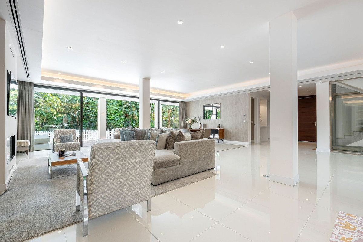 The house is in very good condition, ready to move in. The property features five spacious bedrooms, three on the top floor plus sitting area and two more good sized bedrooms on the lower level as well as games room with pool table and tv/cinema area, perfect for accommodating family and friends with comfort and style. All floors are conected with a modern elevator,under floor heating,a/c, Controle 4 system.Seperated there is a studio that can be converted into staff accommodation.