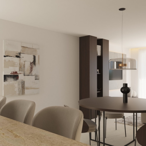 Situated on the first floor of a recently built, low-density block with only five apartments, the property offers privacy, space, and a strong sense of exclusivity. The interior features a spacious open-plan living area and a modern, fully equipped kitchen, creating a bright and airy atmosphere ideal for both everyday living and entertaining. There are three generously sized bedrooms and two elegant bathrooms, both fitted with underfloor heating to ensure comfort throughout the year.