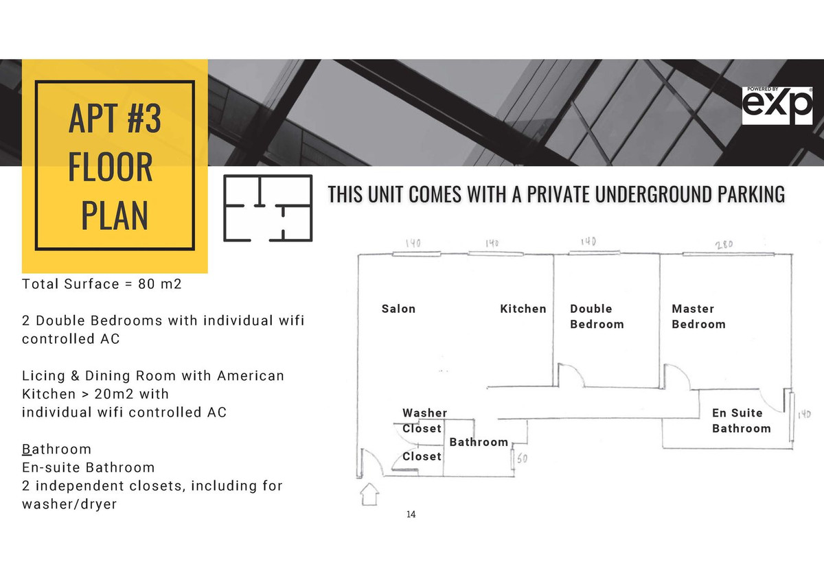 The apartment has top quality double glazing throughout, hot and cold A/C with WiFi (turn it on when on your way home!) in the lounge and both bedrooms, high quality laminate flooring and a private garage parking place with lift access