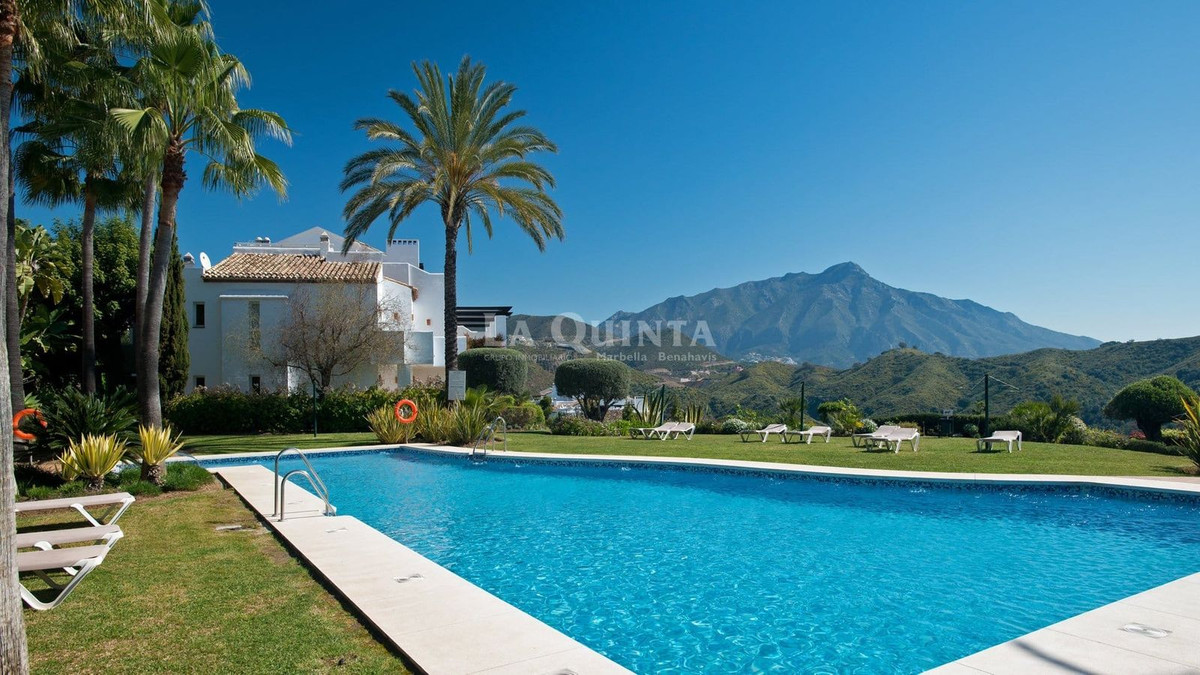 This beautifully maintained 2-bedroom ground floor apartment is located in a secure, gated urbanization in the prestigious La Quinta area. It offers breathtaking mountain and partial sea views, along with a large, private covered terrace that provides a serene setting for relaxing or entertaining.