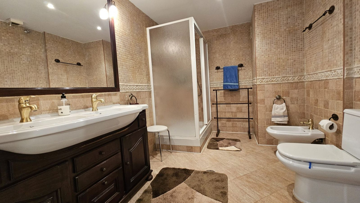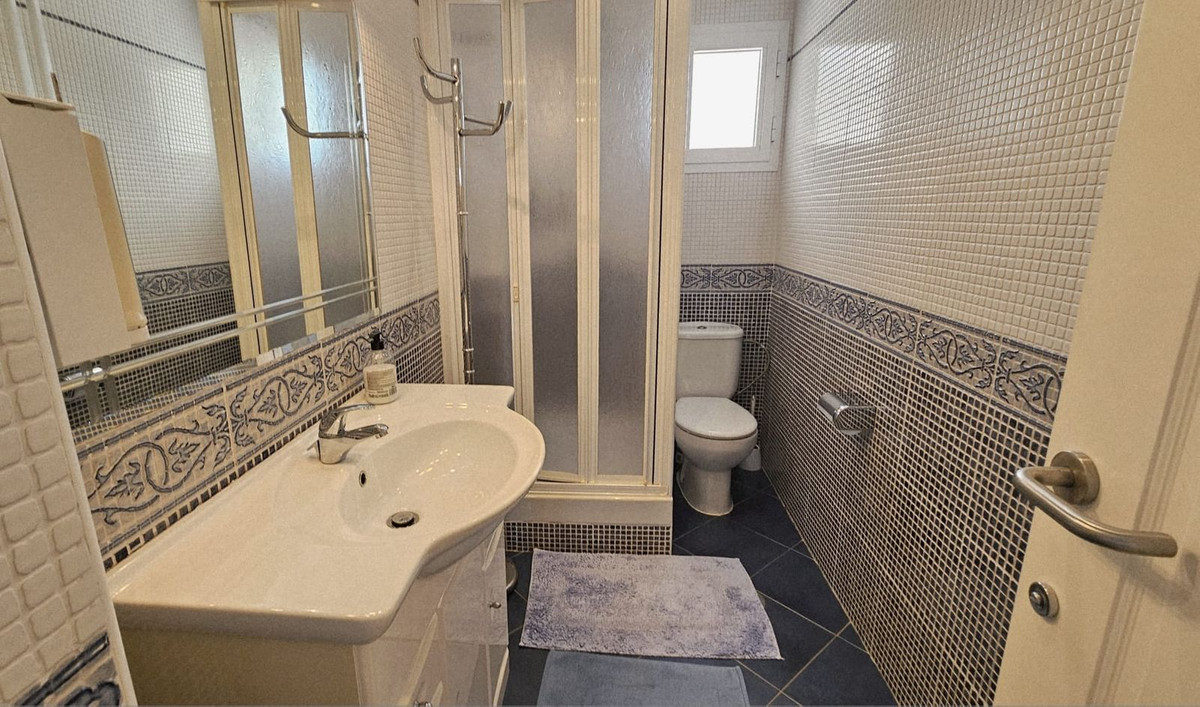 The home has three double bedrooms, all with built-in wardrobes. One of the bedrooms has direct access to the terrace. Two full bathrooms complete the layout.