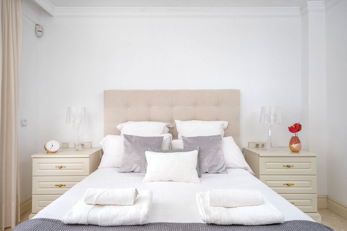 Utmärkt, helt renoverad, tre sovrum första våningen lägenhet på Marbellas Golden Mile, i den eftertraktade strandgemenskapen Las Cañas Beach, med 24 timmars säkerhetstjänst, flera gemensamma pooler och tropiska trädgårdar. Förutom att vara bara en kort promenad till många barer, affärer och restauranger. Casablanca Beach, en av de bästa på kusten, ligger precis utanför ytterdörren. Lägenheten har en rymlig öppen plan levande och matplats med franska dörrar som leder ut till den privata terrassen som är innesluten med glas curtians; fullt utrustat kök; master svit med tillgång till terrassen; två gäst sovrum och ett gäst badrum. Andra funktioner inkluderar varm och kall luftkonditionering och monterade garderober.