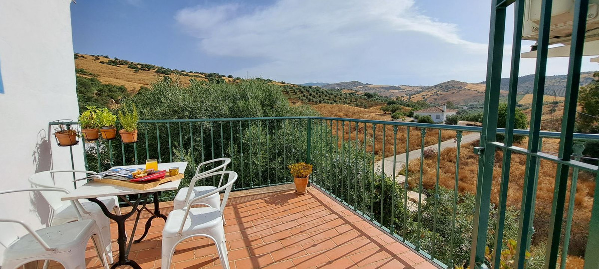 The road to the Cortijo is paved and during the route to the Cortijo you immediately enter the typical Andalusian countryside with distinctive mountains, olive & fruit trees and many breathtaking views.