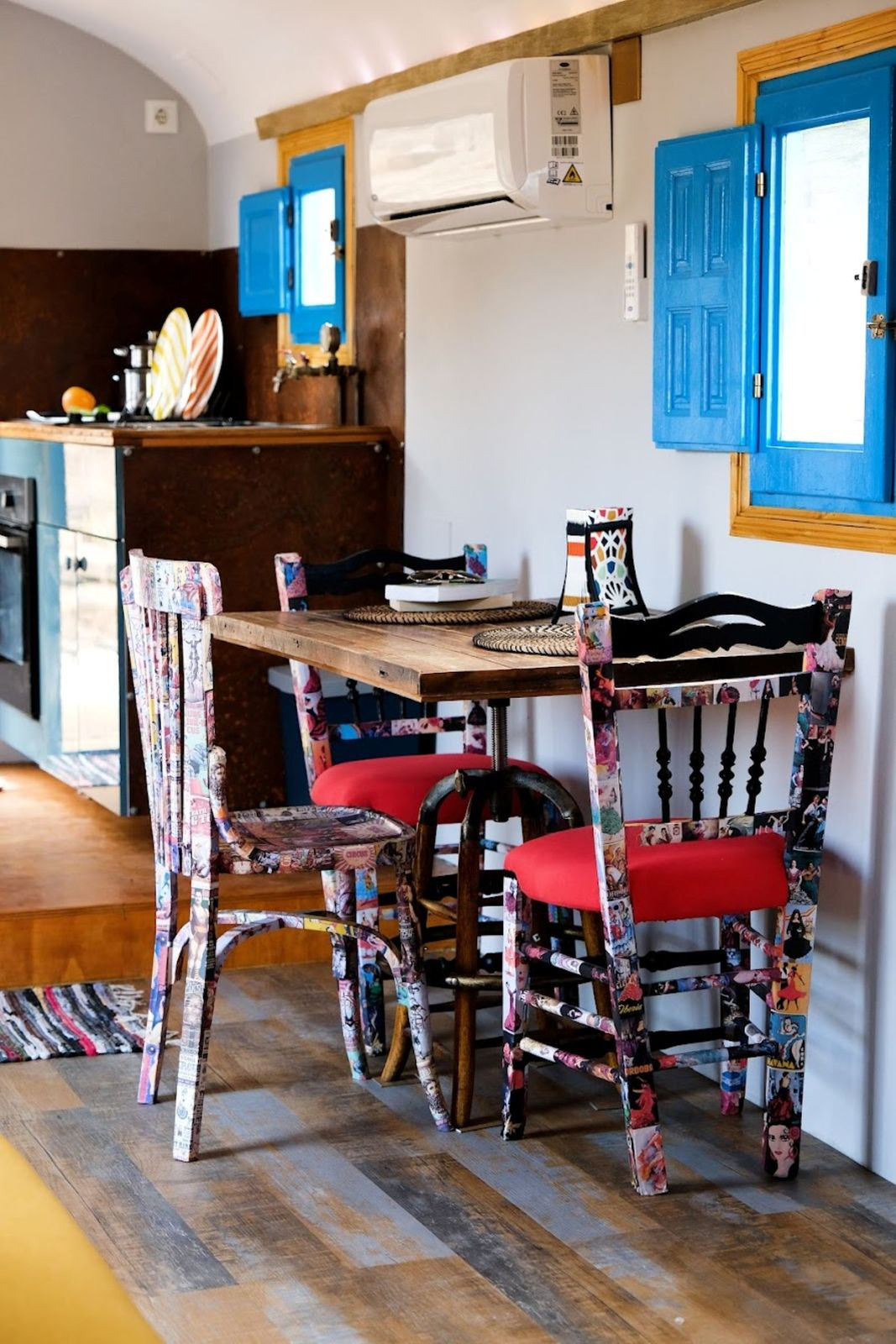 On the top floor is the spacious kitchen and open dining room. The kitchen is well equipped with all the expected built-in appliances. Across the breakfast bar is a dining area for great evenings of entertainment and culinary enjoyment. From the kitchen, there are breathtaking views all around, through the authentic windows with wooden shutters.