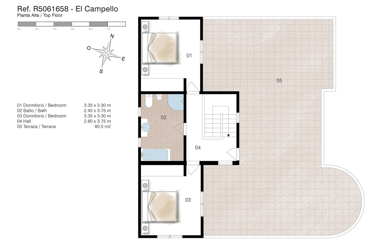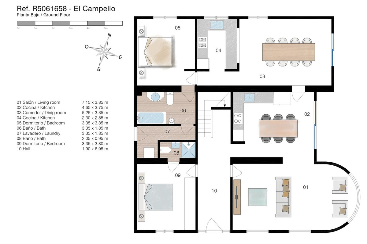 In the northern part of El Campello, this impressive Mediterranean villa stands on a private plot with views of the sea and coastline, just 800 m from a beautiful sandy cove. With a total built area of 230 m² and set on a generous plot more than four times its footprint, the property offers spectacular vistas—most memorably from its expansive 80 m² top terrace.