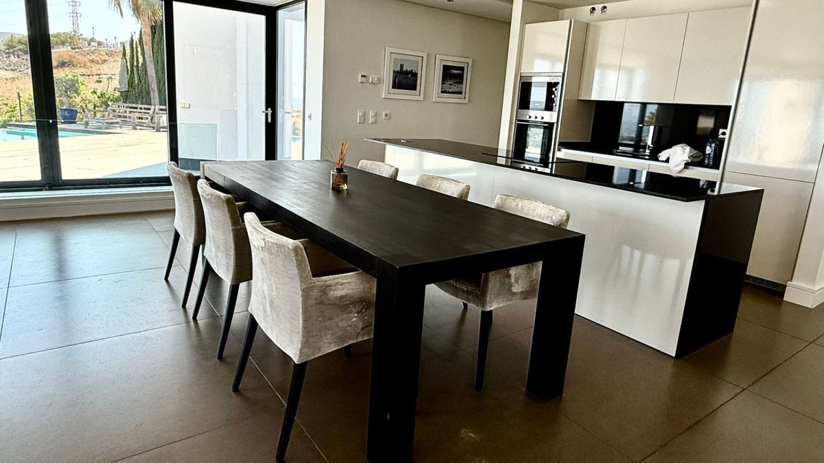 The living area is ideal for both relaxation and entertainment, showcasing magnificent views of the sea and the surrounding landscape. The dining space also opens onto the outdoor terrace, making it perfect for outdoor dining.