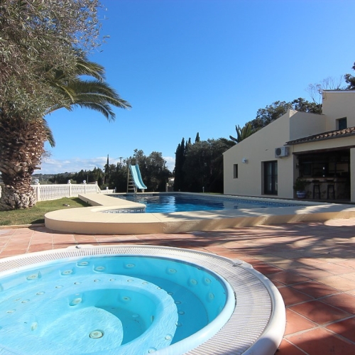 Distributed over two floors, the villa has a cosy living room with fireplace, a fully equipped kitchen, three spacious bedrooms and three full bathrooms. For your comfort, the house has air conditioning, radiator heating and solar panels, which makes it an ideal option for those looking for a sustainable and energy-efficient home.