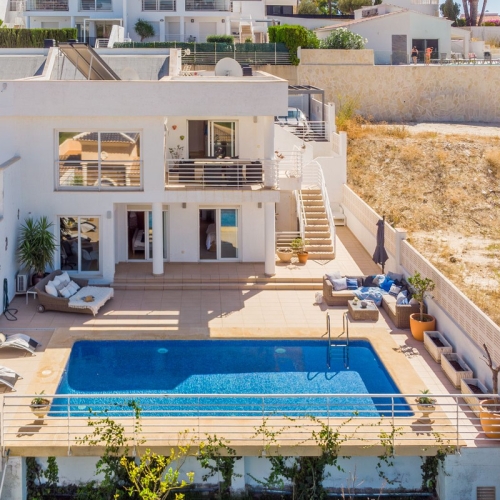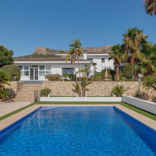 The villa is located in one of the most beautiful residential areas of the Costa Blanca. The towns of Calpe, Benissa, and Moraira offer an exceptionally attractive coastline of great landscape and ecological interest, with a rugged coast and numerous beaches and hidden coves. Only 1.5 km from this extraordinary property is Playa de la Fustera, a sandy beach located between the Les Basetes Marina and Cala Pinets. This beach holds the "Blue Flag" in recognition of the quality of its waters and the numerous available services, such as a promenade, walking trails, disabled access, a children's playground, sports facilities, a Red Cross post, bus stops, parking, maritime surveillance, cafes, and restaurants.