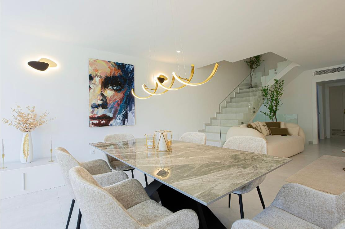 Located in the heart of Aloha, one of the most sought-after residential areas of Nueva Andalucía, this elegant townhouse combines comfort, style, and an unbeatable location. Surrounded by golf courses, restaurants, international schools, and just minutes from Puerto Banús and the beach, it offers a truly privileged lifestyle in Marbella.