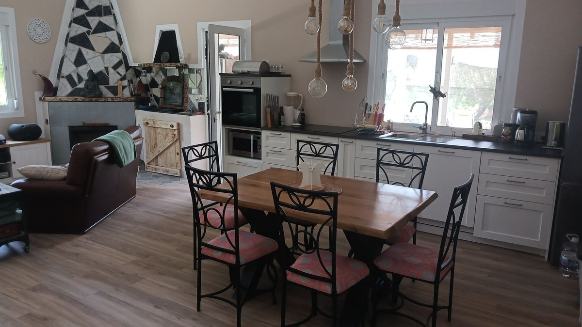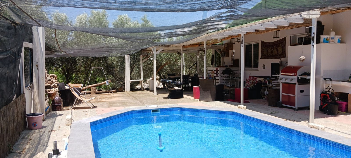 The house, presented as a loft, comprises one bedroom (with the possibility of converting two more), a bathroom, a living room, and an open kitchen (loft). Aluminum windows and doors, new Endesa connection (compliant with regulations), insulation, equipped kitchen (oven, ceramic hob, refrigerator, dishwasher, etc.), wood-burning fireplace with insert, original pizza oven, fully furnished (leather sofas, notarized oak furniture, 2 electric bed bases, etc.), swimming pool also serving as a water tank, 25,000 liter water tank + 4 rainwater tanks of 1,000 liters each, septic tank. The land is fully fenced and includes olive trees, fig trees, almond trees, pear trees, lemon trees, apple trees, pomegranate trees, white vines, laurels, walnut trees... Sold with tractor and all equipment, chainsaw, trimmer, ladders... compressor... The property is located 6 minutes by car from Villanueva del Rosario, 12 minutes from Villanueva del Trabuco and is accessible all year round via concrete roads. Fountains and marked walking paths, opportunities to practice mountaineering...