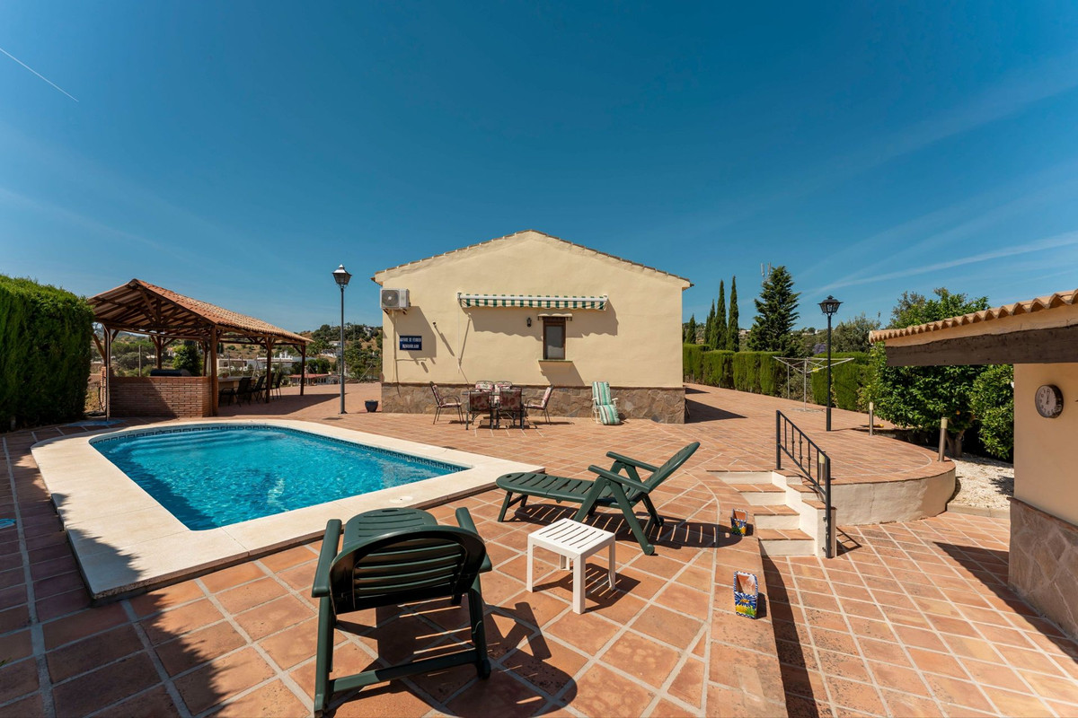 Set in a privileged location between the picturesque villages of Alhaurín el Grande and Coín, this stunning south-facing country estate offers one of the most breathtaking panoramic views in the region. Just one kilometer from the main road, the property enjoys excellent access while maintaining absolute privacy and tranquility. Overlooking the rolling hills and the majestic foothills of the Mijas mountains, the estate spans a manageable 1,400m² plot and comprises a beautifully maintained main house, a charming guest house, and a cosy guest cottage, making it an ideal family retreat or a ready-to-go rural rental business.