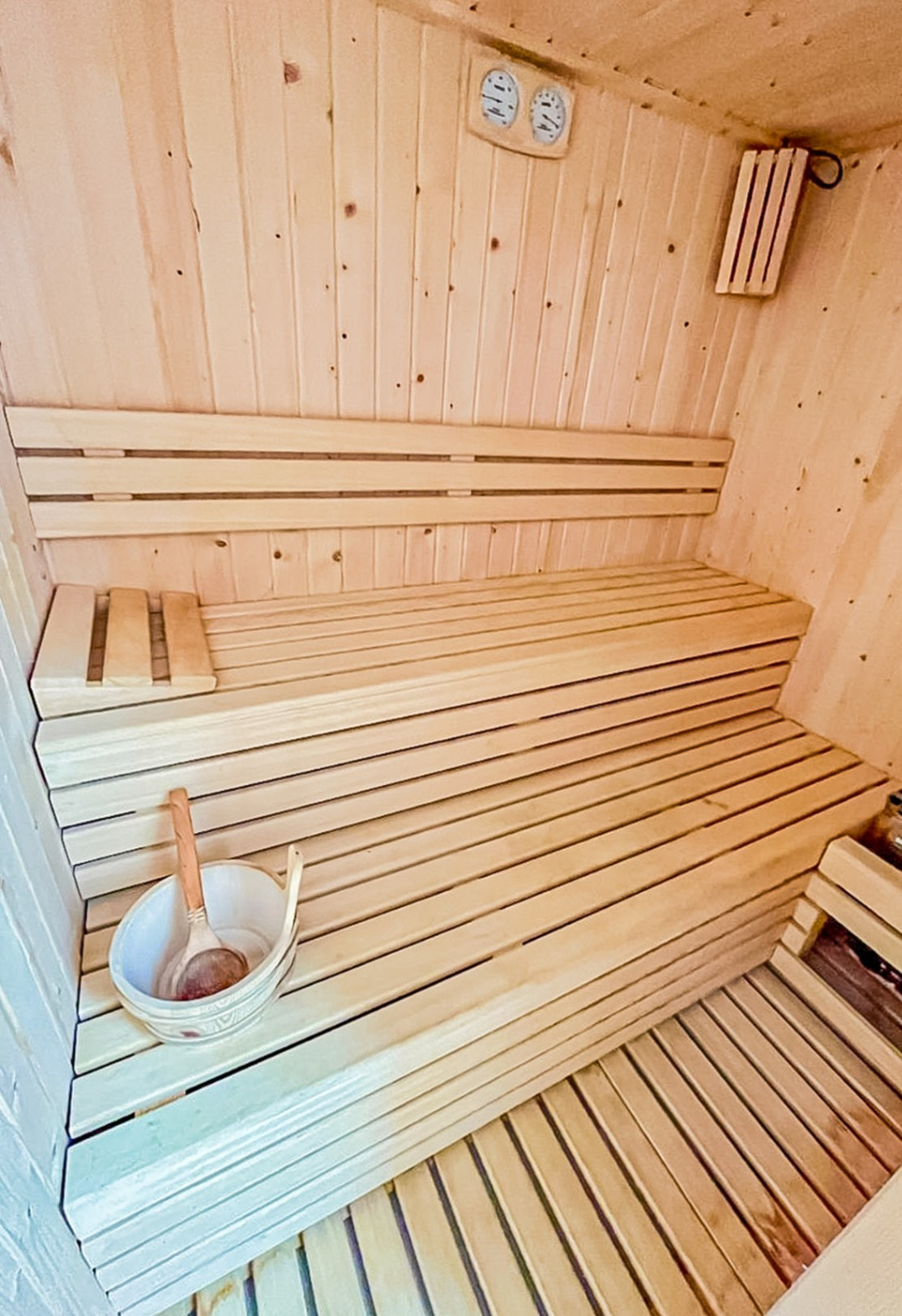 We present this distinguished detached villa, distributed over 3 floors, located in a quiet location, standing out for its elegance and comfort. With a plot of 650 square meters and 180 square meters built, the property houses 4 bedrooms and 4 full bathrooms. The fully equipped kitchen, garage and storage room, along with the presence of a sauna and saltwater pool, add an exclusive touch. South facing, the villa offers a serene atmosphere, while air conditioning and fitted wardrobes provide comfort and practicality. This one-of-a-kind residence fuses quality of life with elegance, creating a homely space in a peaceful setting.