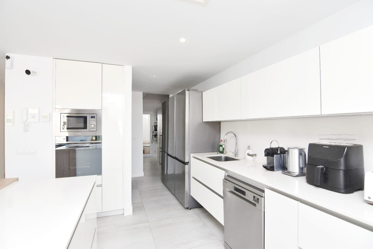 The property has a fully equipped modern kitchen with a large island and an outdoor kitchen with barbecue, 2 living rooms, 3 bedrooms, all with en-suite bathrooms, 1 guest toilet, 3 terraces, 1 private patio, a closed garage for 2 cars, storage room and photovoltaic panels that significantly reduce electricity consumption. All within the prestigious Big Blue urbanisation, in Torremuelle, Benalmádena Pueblo, with a fantastic communal swimming pool, residents gym, social club and security system.