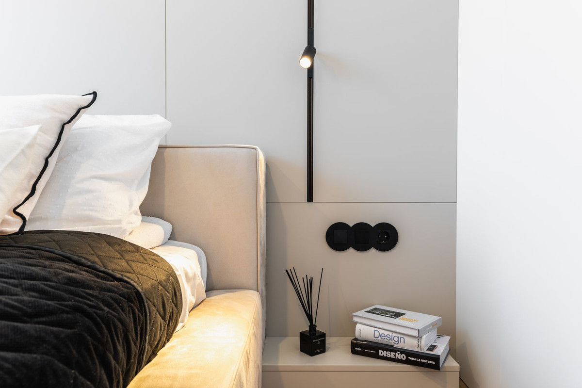 Huset säljs fullt möblerat, noga utvalt av designern Loriini. Materialval som verlkaklinker, Cortizo‑fönster och elektriska aluminiumpersienner samt ett aerotermiskt system för värme och kyla ger komfort året om.