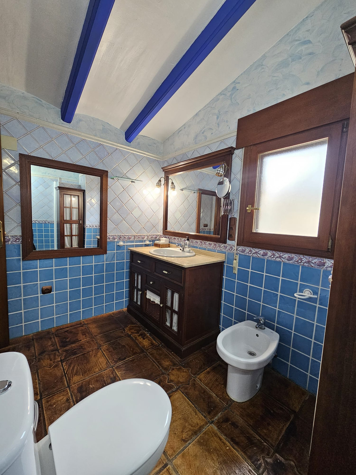 Welcome to this charming natural stone house, built in 1800 and renovated in 2002 with high-quality materials! Located on a 3,900 m² plot in Calpe, this estate offers a unique and character-filled environment, just 1 km from Arenal beach, about a 20-minute walk, and 400 meters from the Tennis Club. The south-facing orientation ensures light and sun all day long, creating a warm and welcoming space. Upon arrival, you can easily access through the electric sliding door or the pedestrian gate. You will find a covered garage with space for two cars, plus additional parking space outside. To the right, there is an old natural water well with its classic basin, ideal for those who appreciate traditional charm; it is currently not connected, but there is a possibility to connect it with a pump, and it is closed and fenced for greater security, separate from the house. The pool, pre-installed for heating, invites you to enjoy it at any time of the year. It also has an outdoor shower, a WC in a separate shed where the pool pump is located, and a storage room. The house has 4 bedrooms, all with heating/cooling air conditioning. On the ground floor, there is one bedroom, and on the upper floor, there are three more, two of which are connected by a door that leads to a shared room with double beds and a spacious storage room. The 3 bathrooms include one with a tub and the other two with showers. Central heating throughout the house, along with a safe system in one of the rooms, provide comfort and security. Notable features include built-in wardrobes with ample storage capacity, ceiling fans, shutters and mosquito nets on all windows, and Mobila wooden carpentry with nice views. The independent kitchen is fully equipped and has a separate pantry. The living room with a closed fireplace creates a warm and cozy atmosphere. Outside, you can enjoy an inner courtyard with a laundry area, perfect for relaxing with a coffee on windy days. The outdoor area also includes a barbecue, a birdhouse for bird lovers, a fenced area with a doghouse, and a covered porch that can be glazed, ideal for enjoying the landscape and the climate. Additionally, there is an original wood-fired oven, which adds a rustic and authentic touch. From the property, you can enjoy wonderful views of Calpe and the Peñón de Ifach, making this house truly special. Without a doubt, it is a home that combines history, comfort, and natural beauty, perfect for enjoying a comfortable and charming life. Don't hesitate to contact us to visit it!