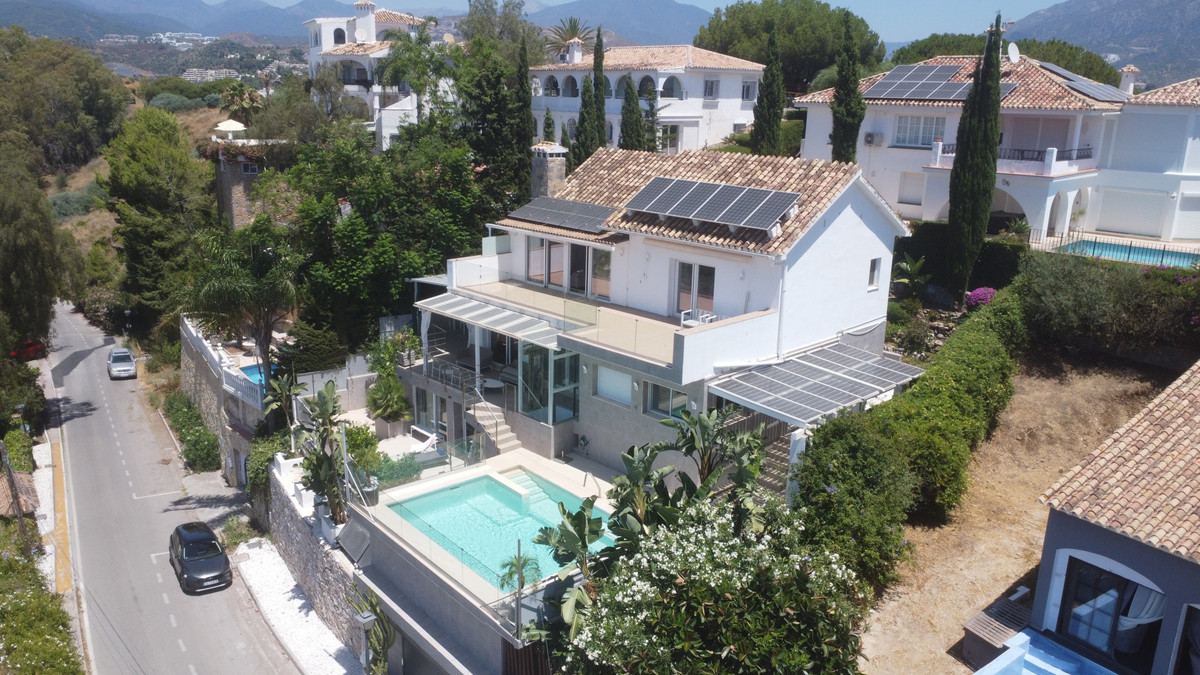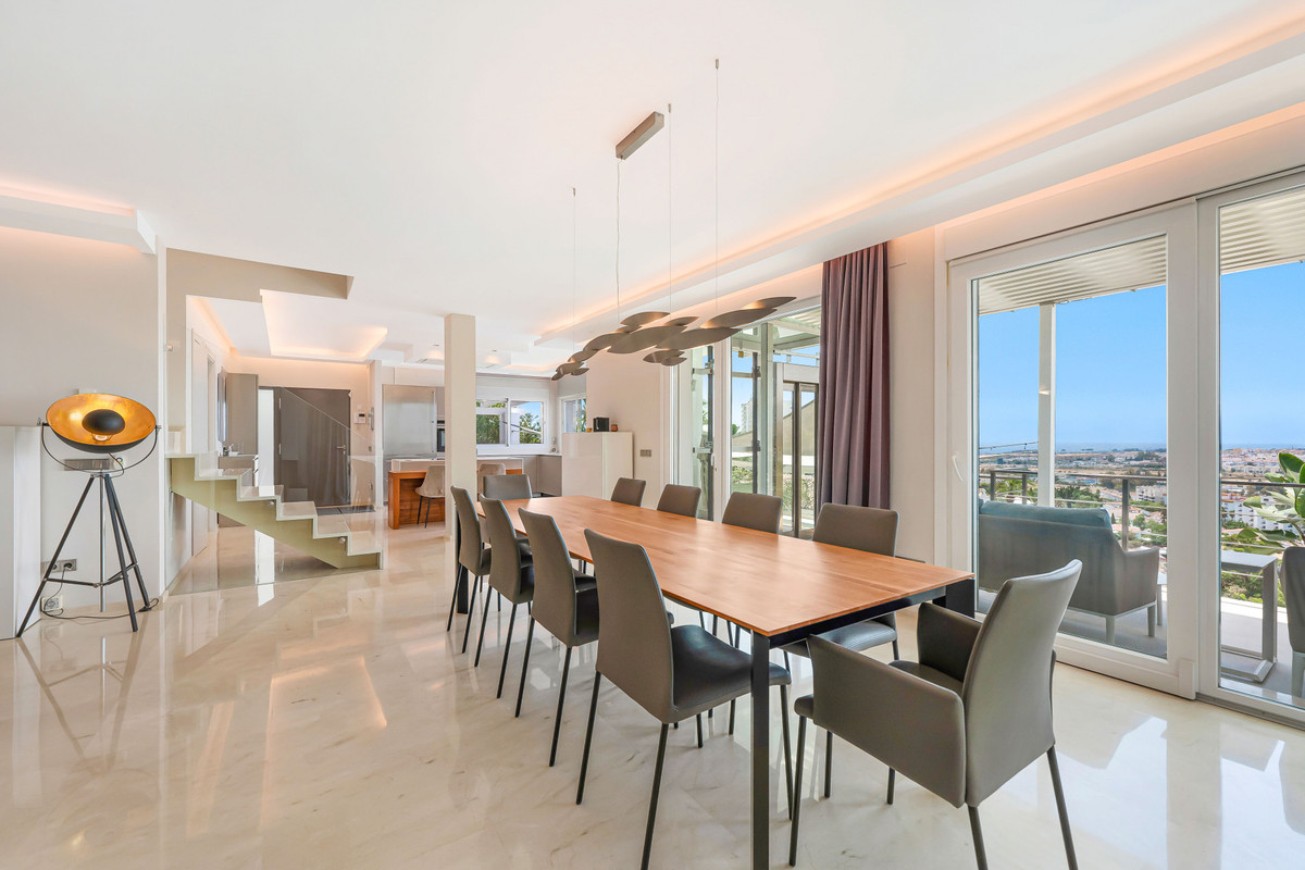 Discover this beautifully renovated and uniquely designed villa with a private guest apartment, lift, and extraordinary panoramic sea and city views, situated in the heart of Nueva Andalucía, Marbella. Just minutes from all local amenities and the vibrant Puerto Banús, this home offers the perfect blend of luxury, comfort, and privacy.