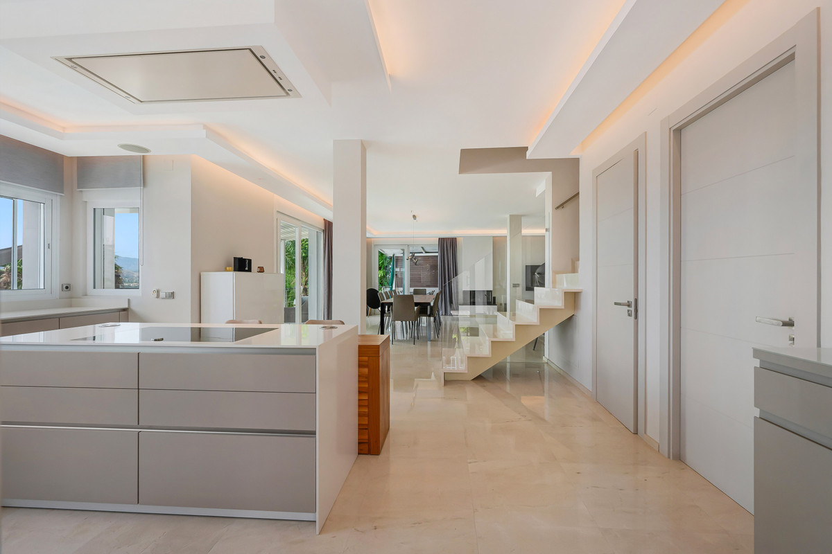 Positioned on elevated ground, this villa enjoys unobstructed views of both the Mediterranean Sea and the surrounding mountain ranges. While just a 5-minute drive from Puerto Banús and Marbella's famed lifestyle, its location offers a peaceful retreat above the hustle and bustle.